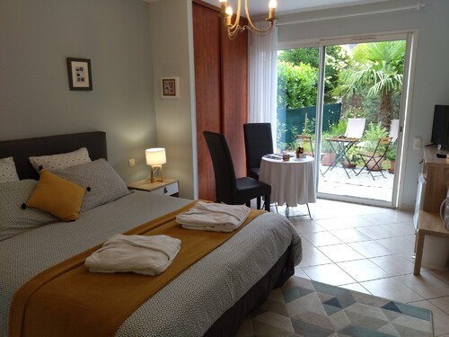 Fleurs de Cosmos est une suite privée lumineuse et spacieuse au rez-de-chaussée de notre maison. À votre disposition, vous avez le salon, salle à manger, votre chambre 18 m² avec salle douche, vasque et toilette. Pour votre confort, vous avez des peignoirs et chaussons à votre disposition. La...